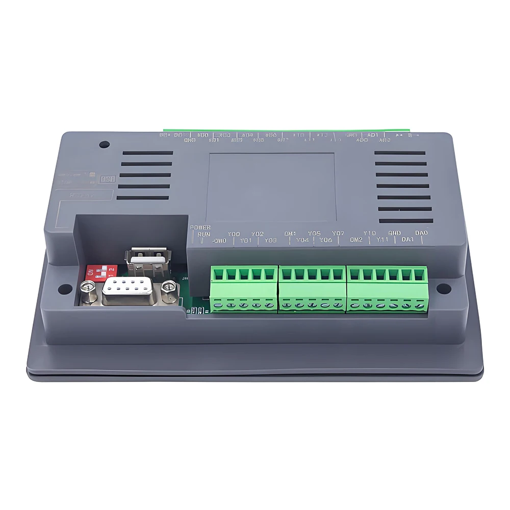 4.3 inch , 12DI 8DO, Relay outputs,3 Analog inputs (0-10V *3) and 0 Analog outputs,1 RS232,1 RS485(terminal block)