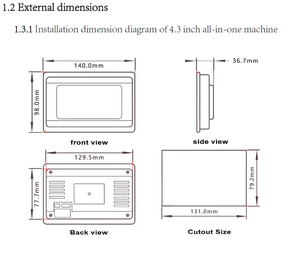 4.3 inch , 12DI 10DO, Transistor outputs,3 Analog inputs (0-10V *3) and 2 Analog outputs(0-10V *2),1 RS232,1 RS485(terminal block)