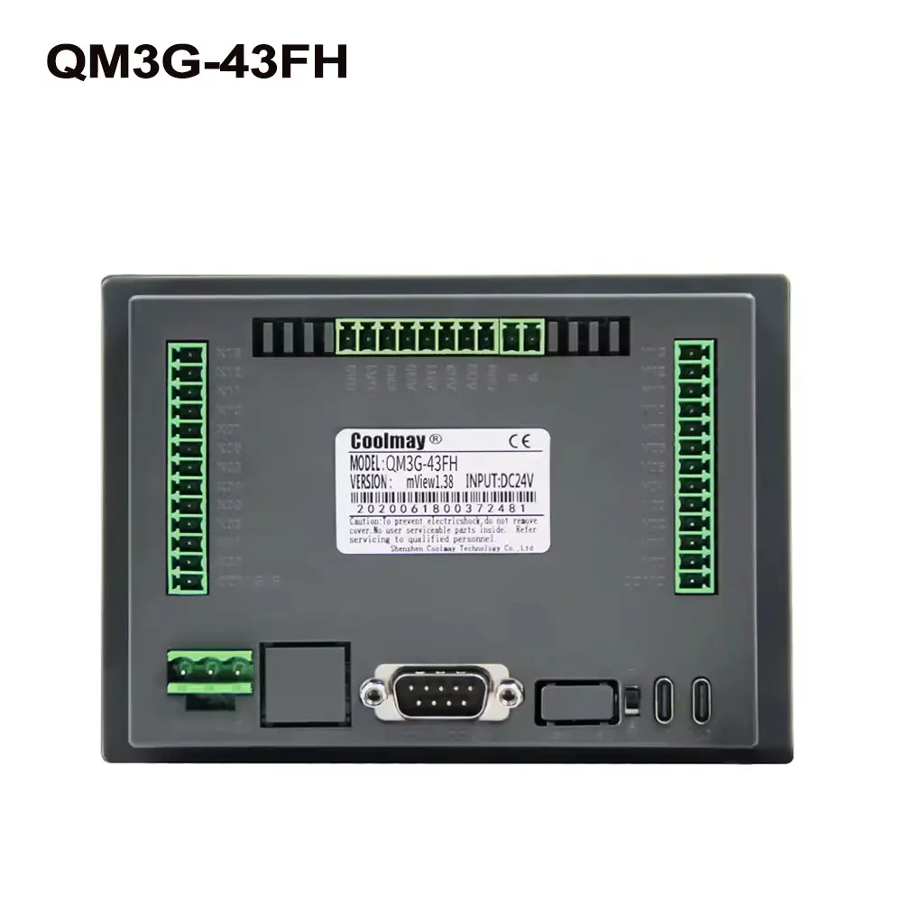 4.3 inch HMI PLC all in one,12DI 12DO, Relay output,Optional maximum 4 Analog inputs and 2 Analog outputs(Extra charge),1 RS232(HMI),1 RS232(PLC),1 RS485(PLC).