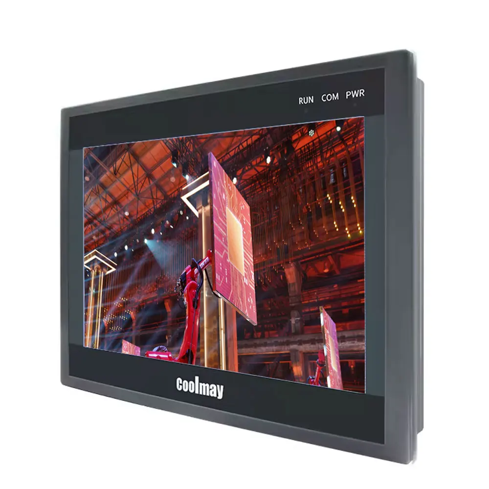 10 inch HMI PLC all in one, 12DI 12DO, Relay output,Optional maximum 16 Analog inputs and 8 Analog outputs(Extra charge),1 RS232(HMI), 1 RS232(PLC),1 RS485(PLC).