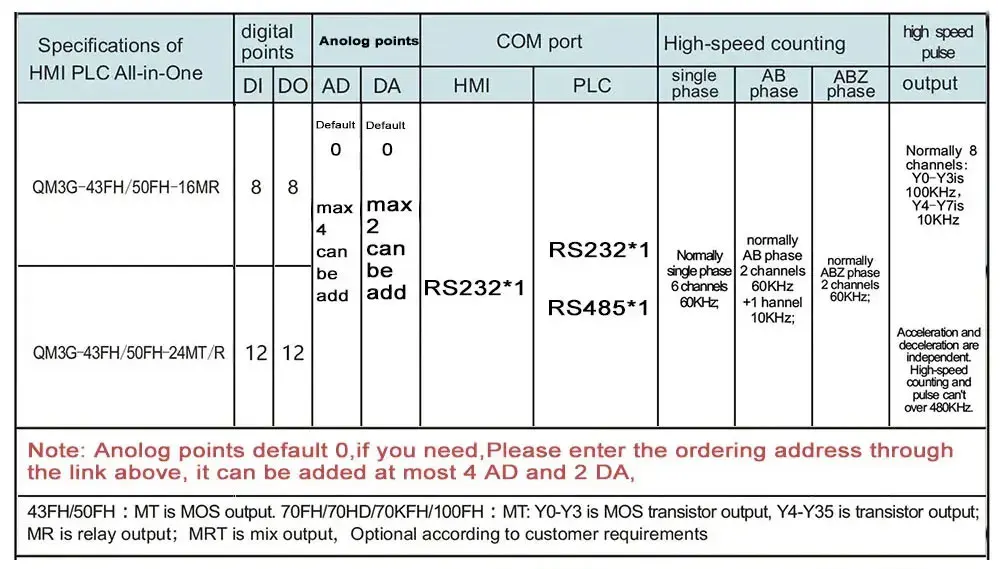 Note :All above products according to the factory configuration, default 0 analog inputs and 0 analog outputs,